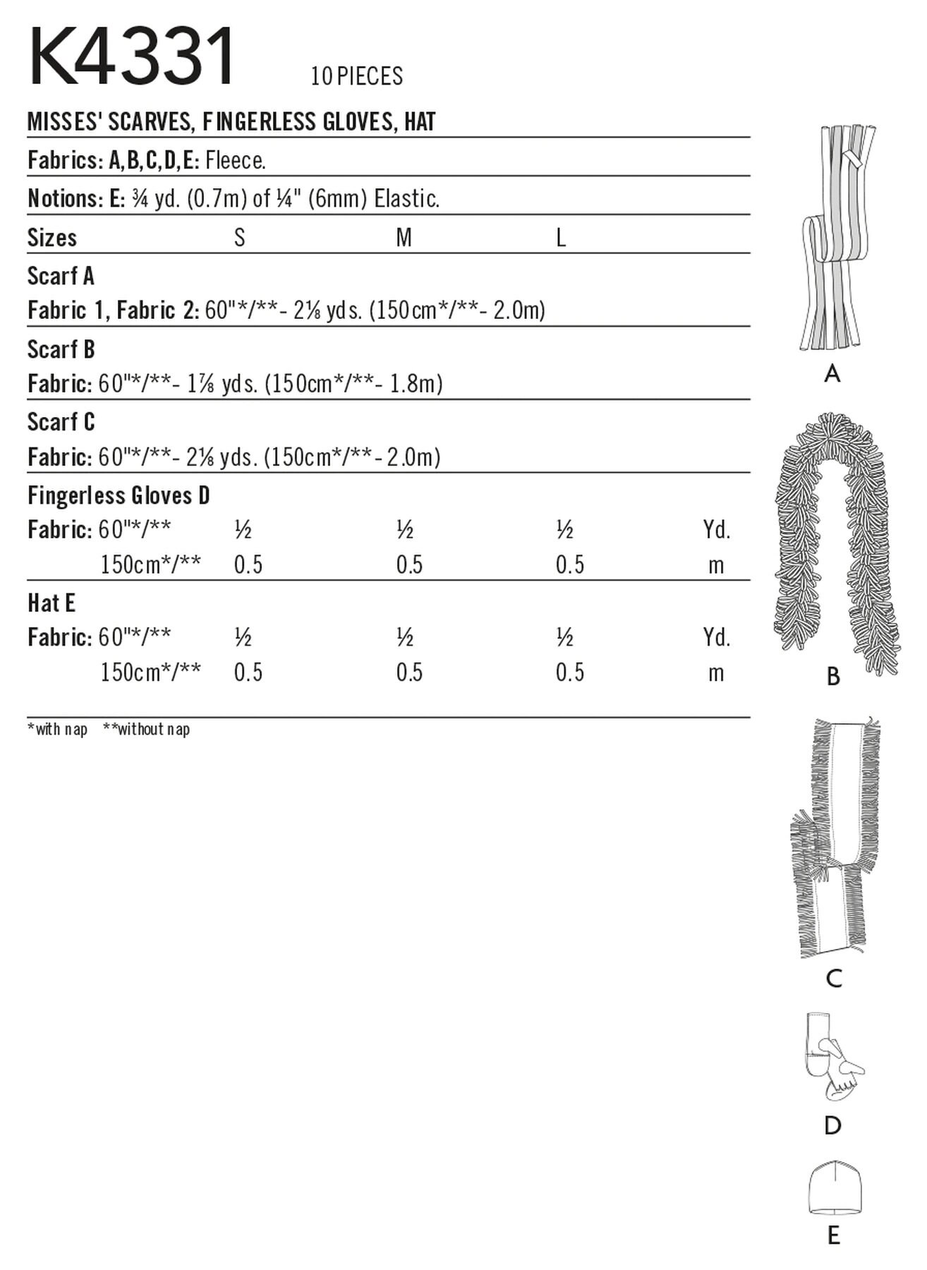 Kwik Sew K4331 Sewing Pattern For Scarves Fingerless Gloves Etsy